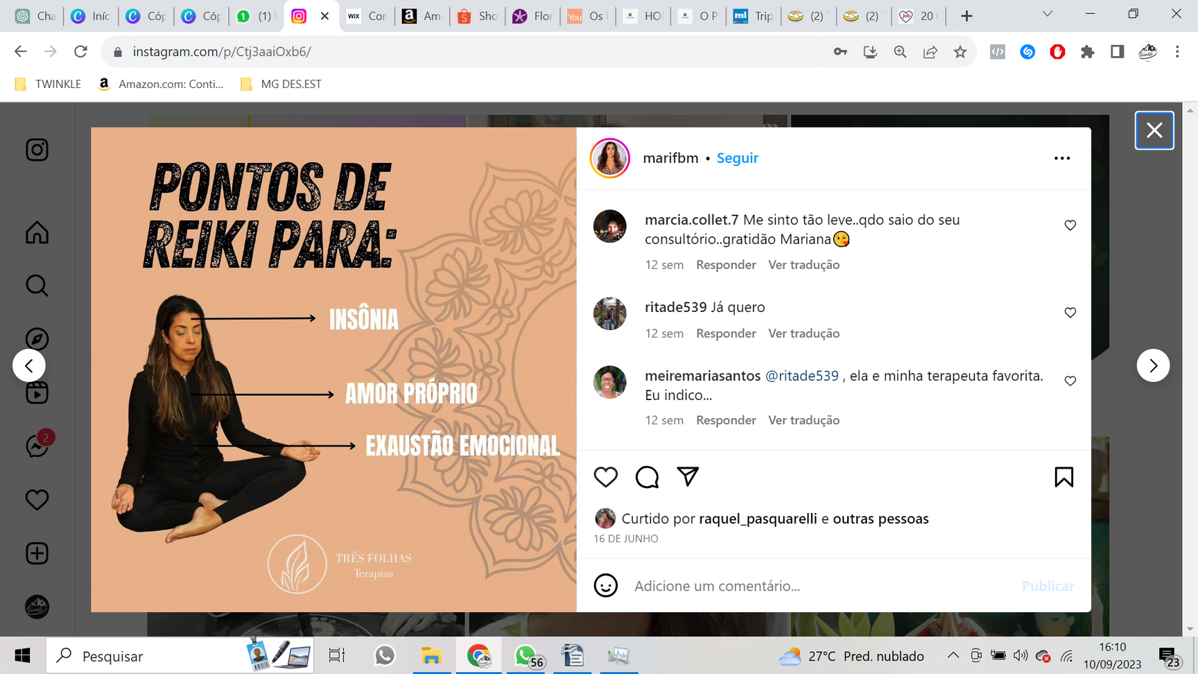 Em 2011 fui iniciada no Reiki Usui, me tornando Mestra em 2012.